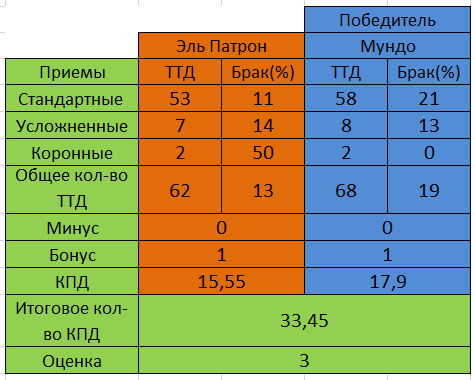 Оценка – рассчитывается из суммарных показателей КПД: