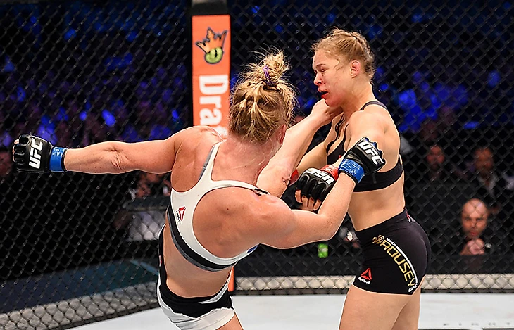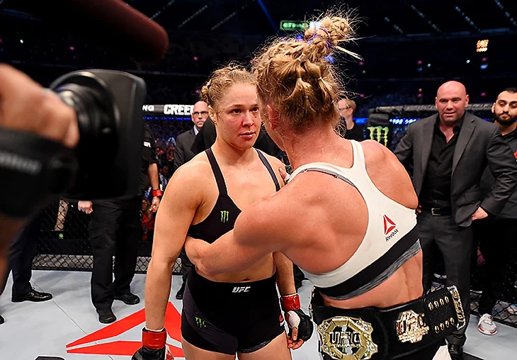 Финальный аккорд – прямое попадание ногой в голову – отправило Ронду в нокаут, и это был один из самых мощных спортивных моментов в 2015 году. Не знаю, что было написано на окровавленном лице Ронды Раузи, но размашистый почерк Холли Холм я запомню надолго.