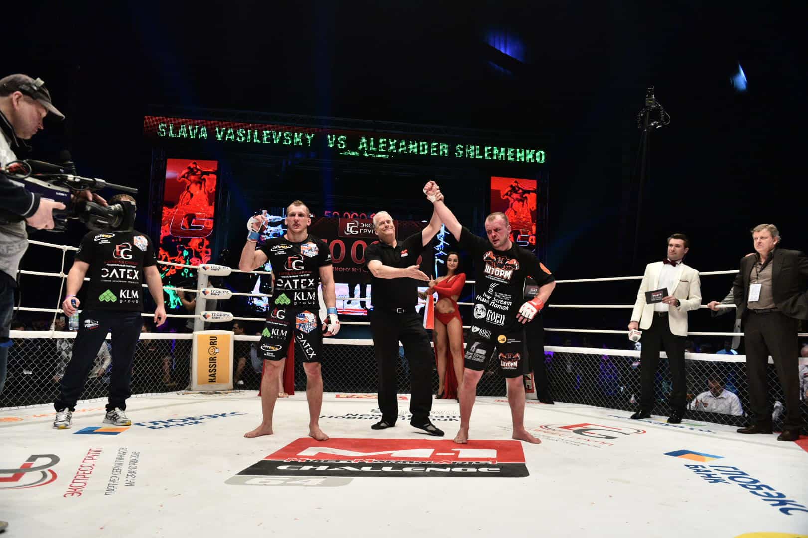 «Выиграл Василевский. Первый раунд он забрал уверенно, второй выиграл Шлеменко. В середине третьего раунда Александр при тэйкдаунах Вячеслава дважды хватался за канаты. За это у Шлеменко должны были снимать бал. Но даже так, в конце раундаСлава сделал перевод в партер, забрал спину и попытался провести удушающий. Считаю, что концовка третьего раунда тоже за Васильевским».