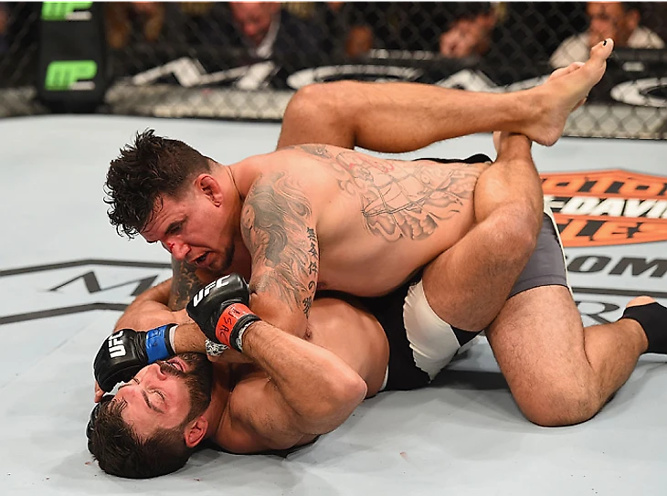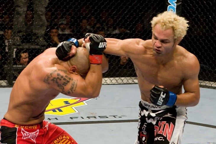 Без сомнения, самым удивительным будет увидетьив этом списке имя этой бразильской машины по проведению тейкдаунов. Давний член семейства American Top Team совершил свой дебют в октагоне на UFC 65 в поединке против Ника Диаза. С тех пор Глейсон Тибау подрался со всеми бойцами в легком дивизионе, становясь лучше многих и обеспечивая непомерно трудное испытание для других бойцов. Тибау уже провел 84 тейкдауна в октагоне, это на 3 меньше, чем у рекордсмена бывшего чемпиона в полусреднем весе, Джорджа Сент-Пьера. Одним из наиболее заметных выступлений Глейсона является его победа раздельным решением над нынешним чемпионом в легком весе Рафаэлем Дос Аньосом. Также стоит отметить «бой вечера» против Пиотра Холлманна и его победы единогласным решением над Франциско Триналдо и Пэтом Хили. Хотя в 2015 году Тибау все еще был активным бойцом и провел 3 поединка, его допинг-тест показал положительный результат и ему запретили участия в боях на 2 года.