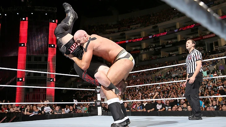 Клаудио Кастаньолли и Кевин Стин... У Сезаро и Оуэнса давняя история противостояний ещё на инди-уровне и неудивительно, что каждый их поединок поклонники рестлинга ждут с особым трепетом. Шейн действительно услужил всем, поставив в оупенер двух превосходных атлетов, которые за отведённые 15 минут смогли превзойти самих себя образца SummerSlam 2015 и показать очень хороший поединок. Этот бой сразу же дал ответ, что же будет делать Сезаро после возвращения - швейцарец упорно пробивается в топ-фейсы федерации и имеет колоссальную поддержку публики. С Кевином тоже всё предельно ясно: помимо того, что он уже целый год стабильно демонстрирует классный рестлинг, он не забывает вкладываться в сюжеты и свой образ (момент с поднятием шляпы JBL'а просто порвал). Глупо описывать сам поединок, он получился просто обалденным. Сезаро победил после "нитролайзера" и стал #1 Претендентом на ИК-титул. После боя Кевин пообещал вновь испортить вечер для Сэми Зейна, на что Шейн попросту выгнал канадца с арены домой.