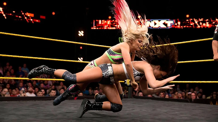 Второй матч вечера также не имел какой-либо сюжетной подоплёки и был проверкой ближайшего резерва женского дивизиона NXT. Алекса отлично отыгрывала роль хила на протяжении всего поединка, изводя публику едкими выкриками, а свою соперницу хлёсткими ударами. Тесса пару раз неплохо огрызнулась, но на большее её не хватило. Всё же опыт Блисс сказался, и она добила свою соперницу красивым "стомпом", показав, что вовсю старается совершенствоваться.