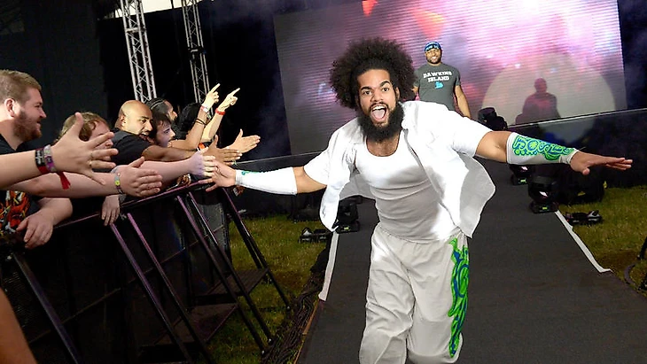 Местный репортёр берёт интервью у расслабленного чемпиона NXT Самоа Джо.