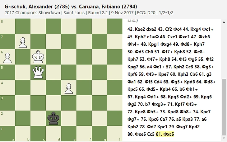 Каруана после партии признался, что в какой-то момент, когда на часах оставалось по 4 секунды, перестал вообще осмысливать происходящее на доске и старался делать короткие ходы королём.
