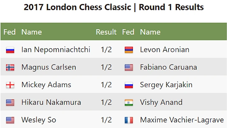 London Chess Classic. Раунд 1