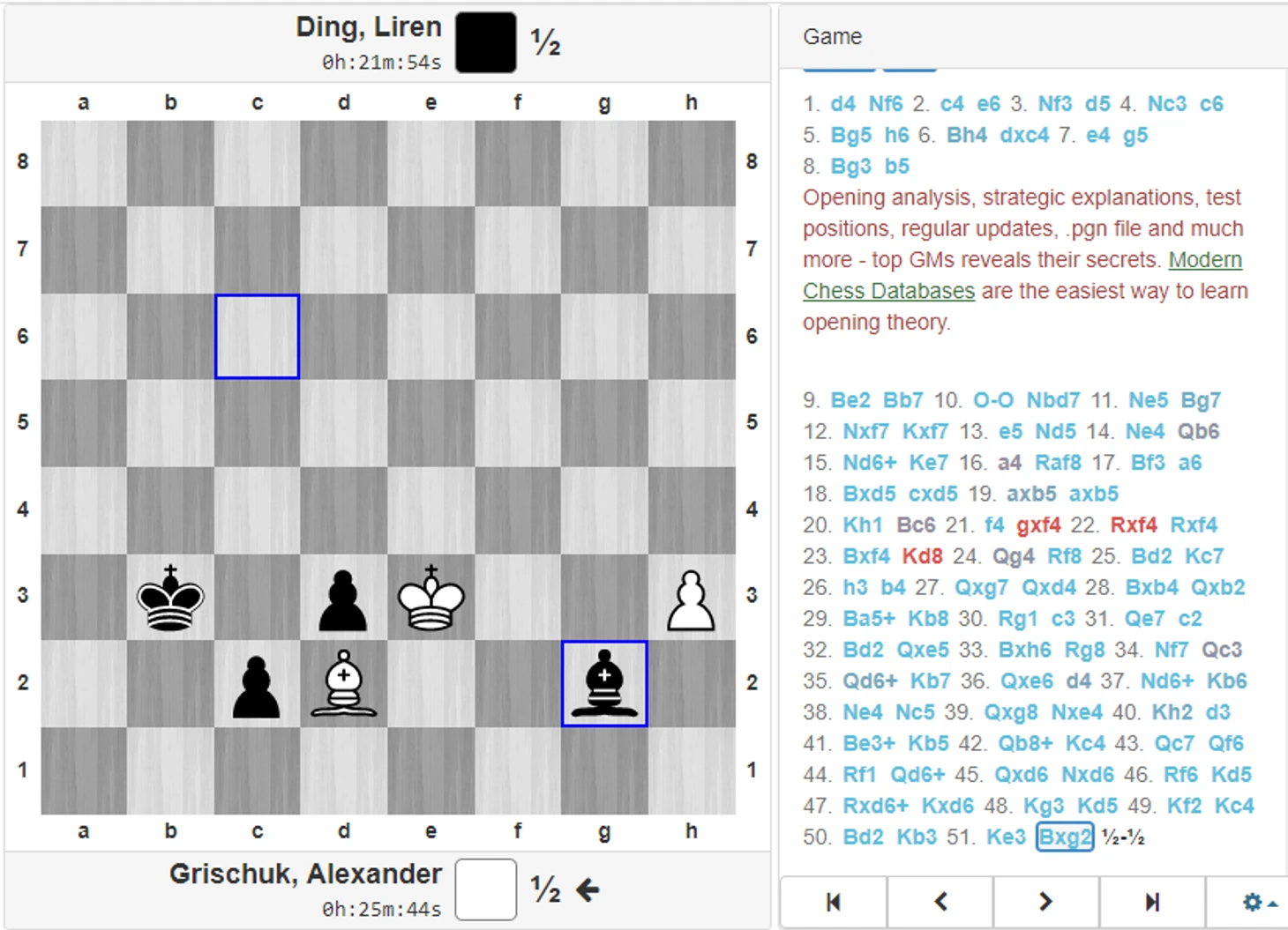 Я немного удивлён тем, что Грищук не поднял выигрывающее 21. Сh4+. Компьютерные линии частенько сложны для человека, но не сейчас. Это было достаточно просто, поверьте (вольный перевод)