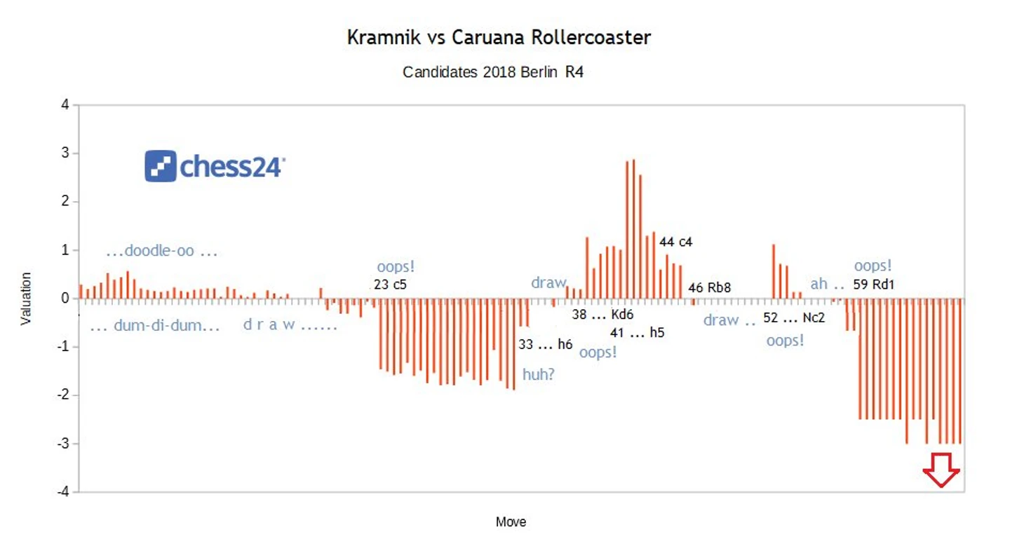 Петр Свидлер: О боже мой! У меня нет слов, чтобы описать это: после 59. Лd1?? Ла1+ Каруана выигрывает. Катастрофа для Владимира Крамника.