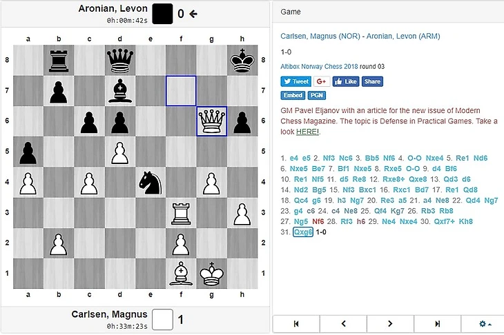 Вот вам и Берлинский вариант: Магнус разгромил Левона в 31 ход: