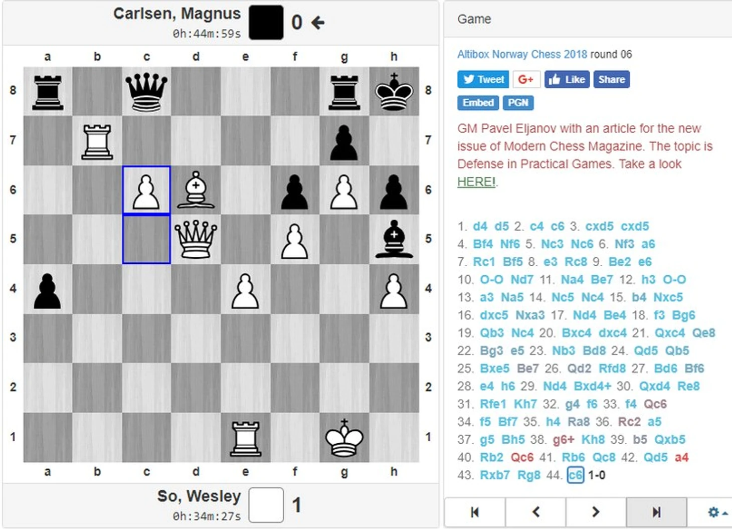 Nakamura: "Wesley wasn’t ready for the Slav so he played this boring exchange & Magnus tried to provoke him. And now Magnus is in a lot of trouble."
