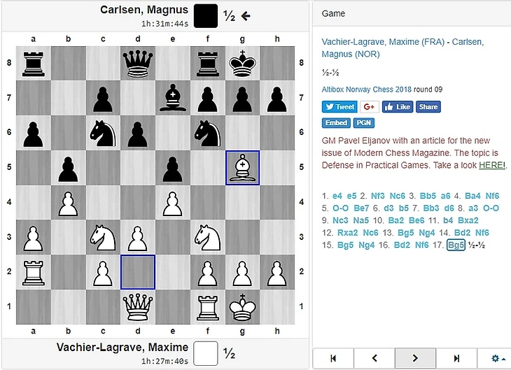 Понятно, что черным цветом на победу играть рискованно, к тому же при такой турнирной ситуации, где тебя вроде бы всё устраивает, кроме победы основного конкурента. Но ты же Магнус Карлсен! Какая ещё ничья в 16 ходов?