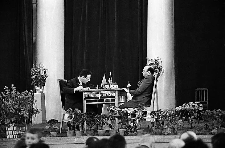 The game in Moscow in 1948: Botvinnik against Samuel Reshevsky (US).