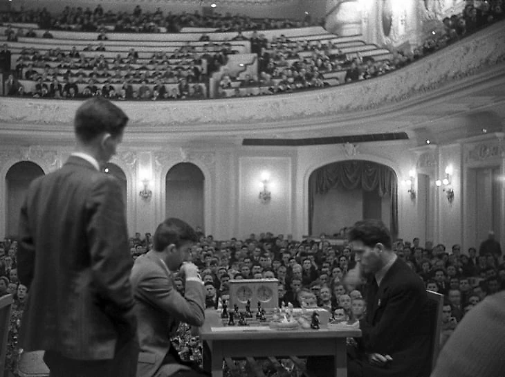 Chess as a spectacle: a game in the Big Hall of the Moscow Conservatory, USSR 1960 championship.