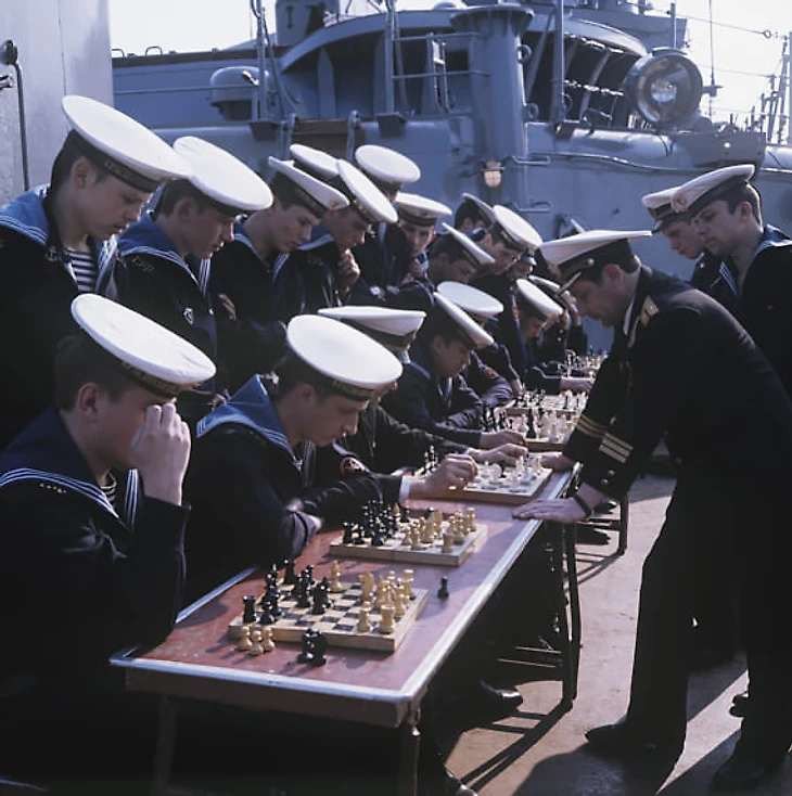 70s. Simultaneous chess for sailors of the Baltic Fleet.