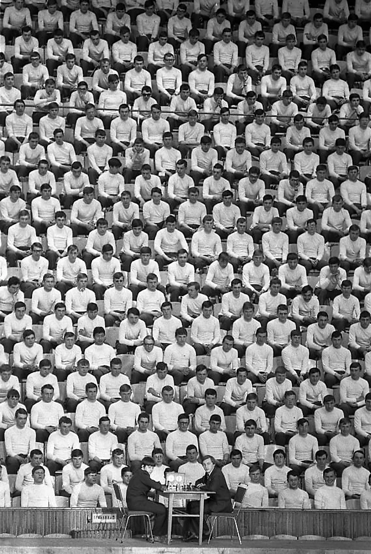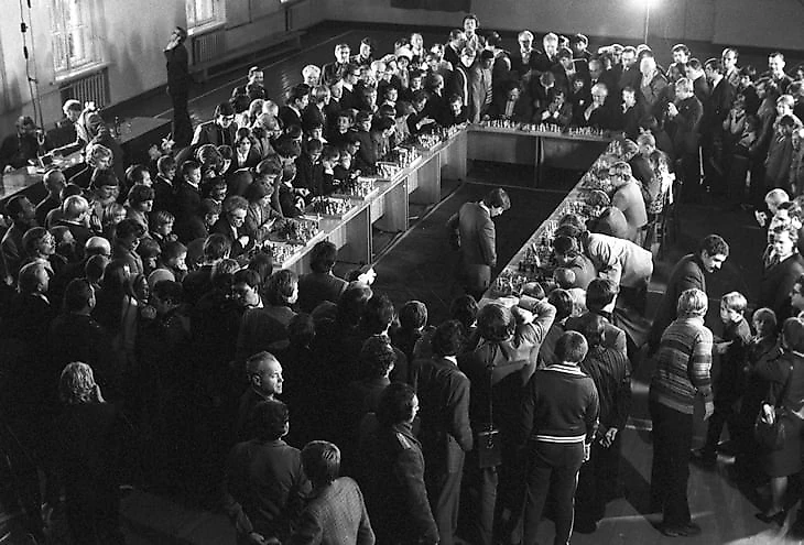 The 80s were marked with the Anatoly Karpov vs Garry Kasparov rivalry, arguably the most iconic one in the history of chess. Karpov had sold-outs already in the 70s. Here’s his exhibition game in 1978 at a sporting event dedicated to the 18th all-Union party gathering.