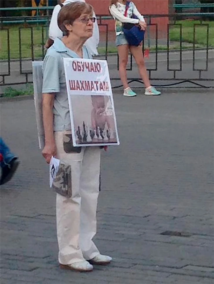 Here’s Valentina Danilko, a woman already in her 70s. She studied at that very School Number 1 in Beslan. For years, she has stayed with the ‘[I] Teach chess’ banner near a Moscow Metro station. Magazine ‘Mel’ has a heart-warming article dedicated to her.
