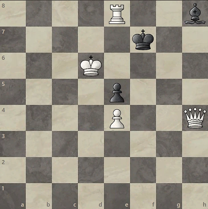 А вот и первый ход - сверьтесь, так ли решили. 3 ответных хода черных, думаю, просчитает любой.
