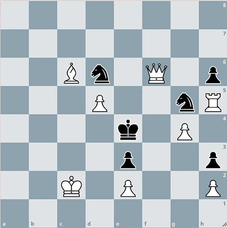 Вам нужно за 3 минуты (хотя бы) найти мат в 2 хода, начиная и играя белыми фигурами.