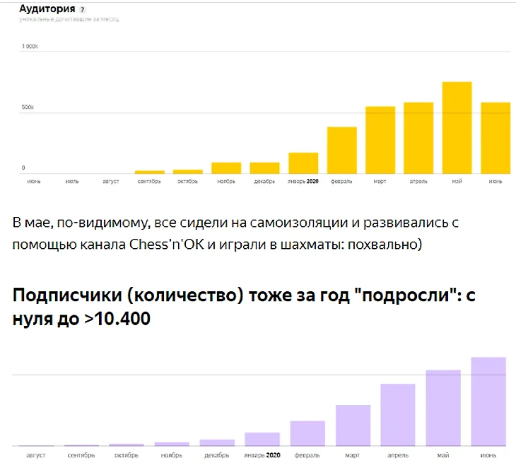 За год опубликовано больше 4000 статей, из них >3000 - задачи, этюды и тесты, около 1000 видео-разборов партий и задач.