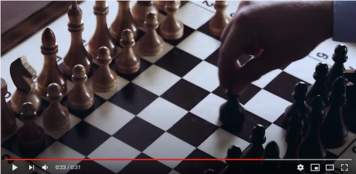 И первый же кадр удивляет: чёрные играют белой фигурой. Или чёрные играют сами с собой? Но по расположению фигур на доске понимаешь, что 17-е место в чемпионате школы – это потолок.