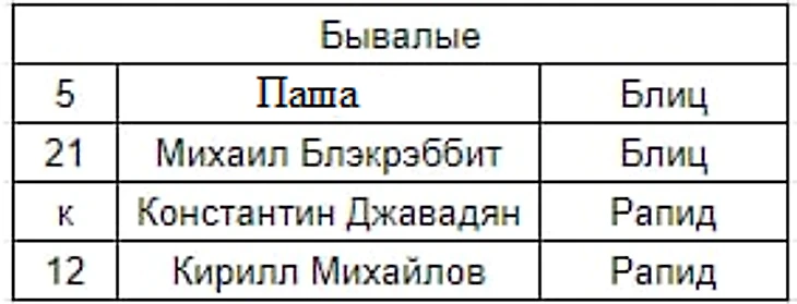 Матчи в рапидном контроле (сейчас идёт голосование о нём, ранее контроль был 10+5. Вполне возможно, что именно таким он и останется, если нет, то 5+5).