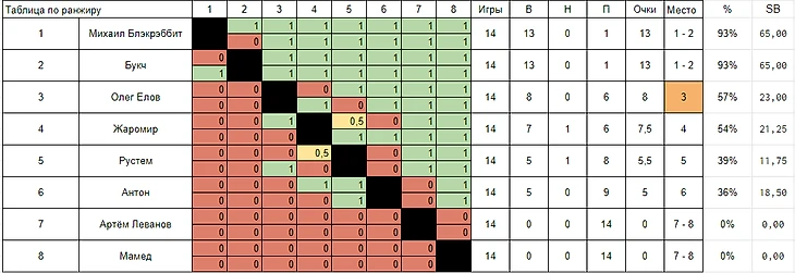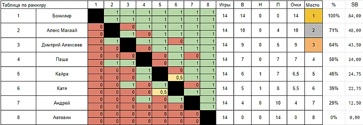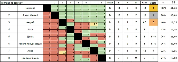 Чемпионом турнира стал Бонимир. Впервые за три турнира победитель не потерял ни одного очка. Просто супер!