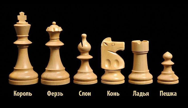 У каждого игрока будет король и ферзь, по две фигуры: ладьи, слона, коня, и 8 пешек. Различать фигуры несложно, в классическом варианте они изображаются одинаково. Например: