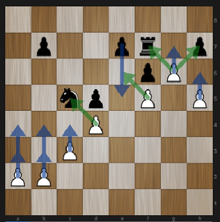 Когда пешка изменила начальную позицию — может двигаться на одну клетку вперед.