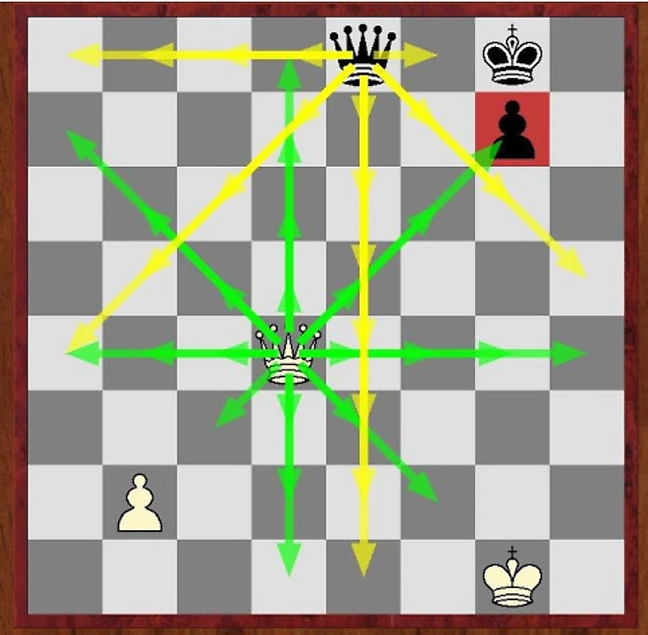 Пешки бьют по диагонали, они не могут ударить по горизонтали, вперед или назад.