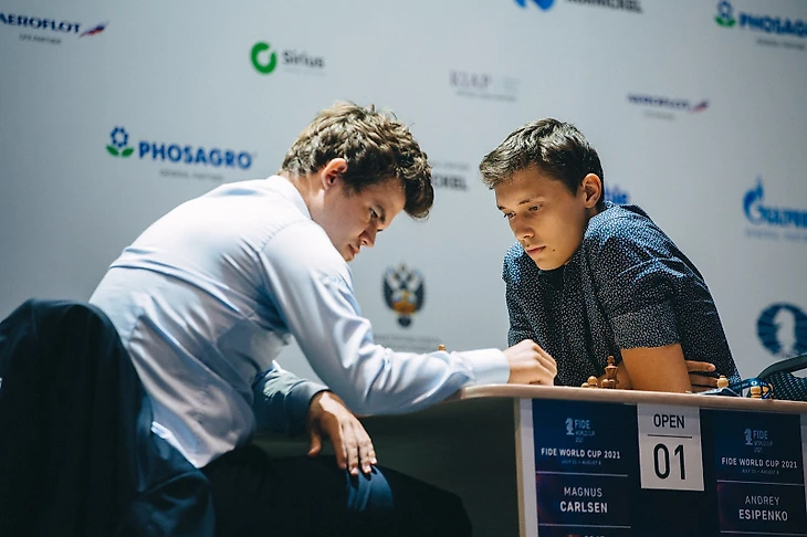 Участник программ Образовательного центра «Сириус» Андрей Есипенко попал в 1/8 финала Кубка мира ФИДЕ по шахматам, который сейчас проходит в Красной Поляне. Соперником 19-летнего гроссмейстера в пятом круге стал действующий чемпион мира норвежец Магнус Карлсен, которого российский шахматист обыграл в начале текущего года. Первые две партии завершились вничью, исход матча решится на тай-брейке 27 июля в 15:00. Трансляция игры пройдет на YouTube-канале ФИДЕ.
