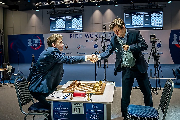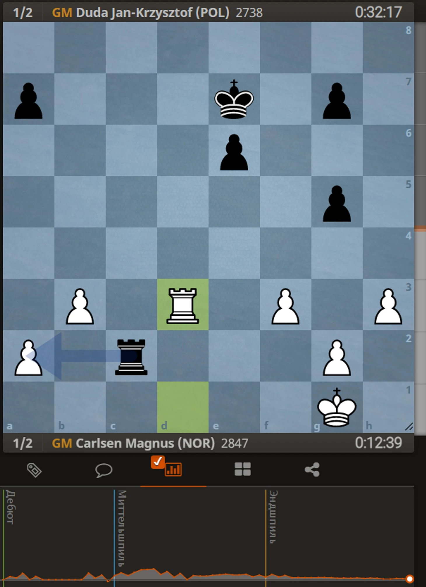Чемпион мира играл белыми фигурами против польского гроссмейстера Яна-Кшиштофа Дуды.