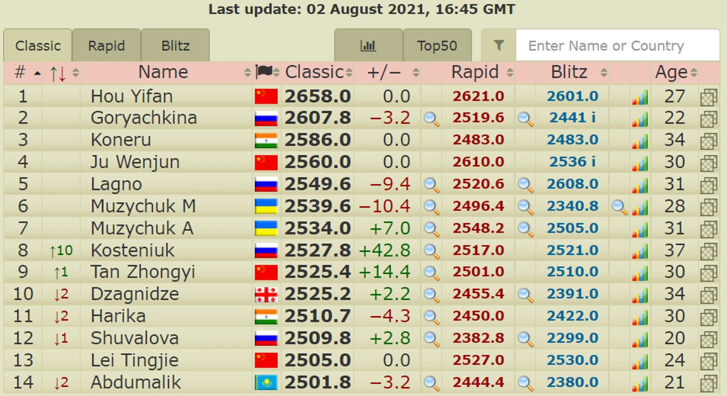 За весь турнир Костенюк прибавила 42.8 пункта рейтинга. А вот Александра Горячкина чуть было не вылетела из 2600, но смогла сохранить рейтинг на отметке 2604.