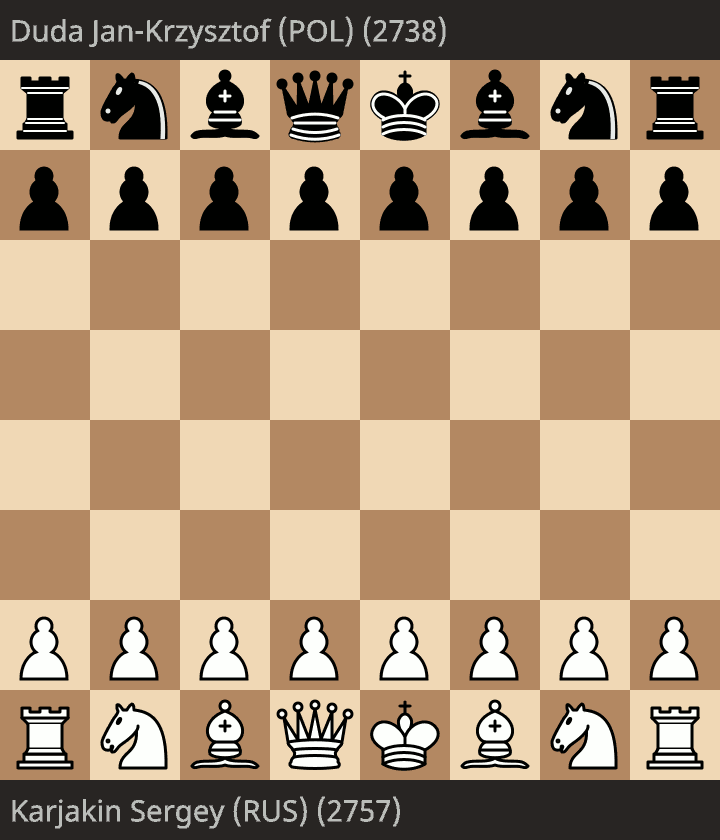 К сожалению многих зрителей, центральная партия игрового дня завершилась достаточно быстро. Играя белым цветом, Сергей Карякин решил не идти на самые острые варианты ферзевого гамбита, а Ян-Кшиштоф Дуда был слишком измотан после вчерашнего тай-брейка, чтобы играть на победу черными.