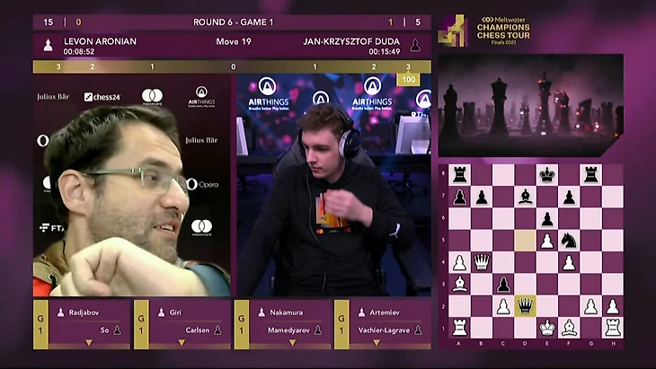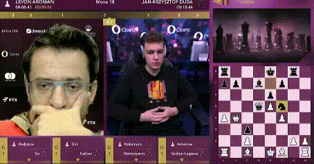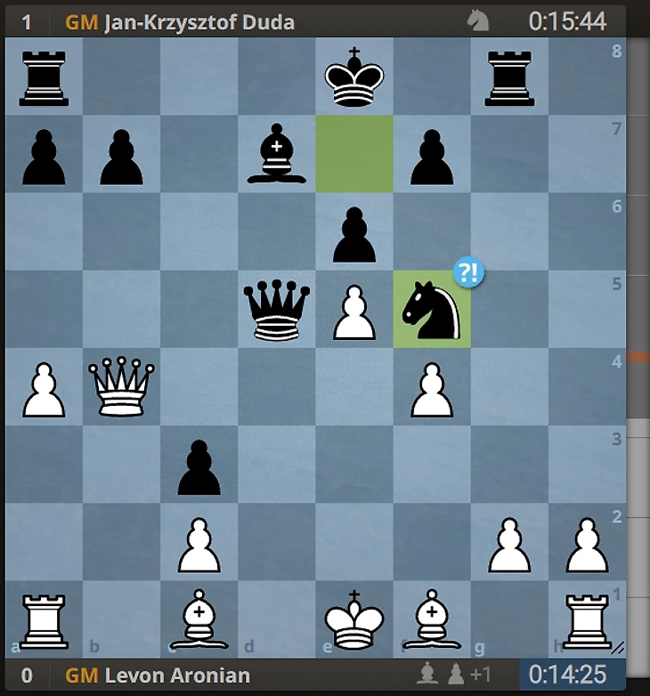 Левон Аронян играл первую партию матча против Ян-Кшиштофа Дуды. На доске образовалась следующая позиция, над которой Аронян думал чуть больше пяти минут.