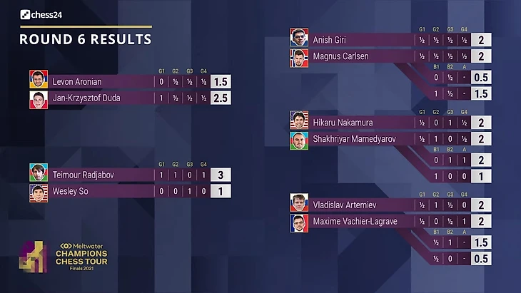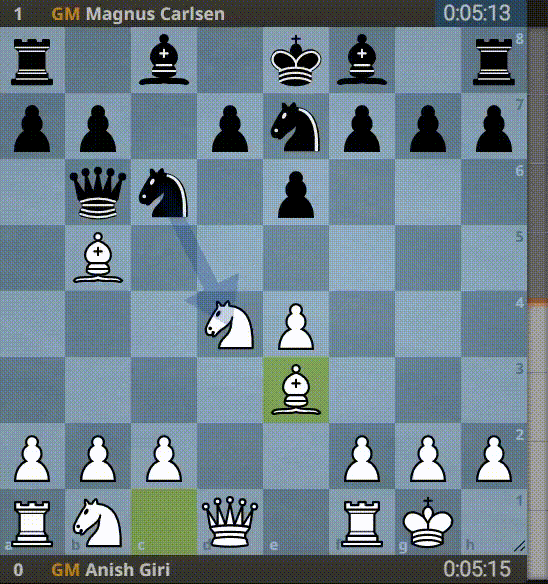 Среди остальных ярких моментов игрового дня стоит выделить Магнуса Карлсена, который разменял ферзя за три легкие фигуры в дебюте против Аниша Гири.