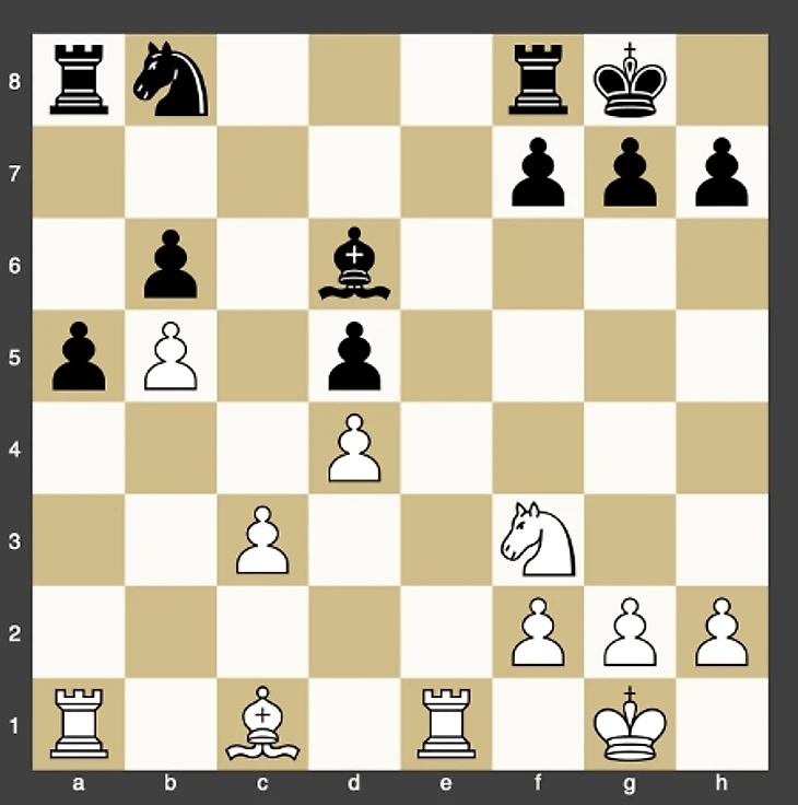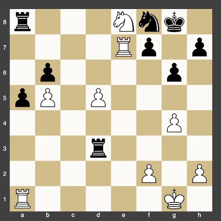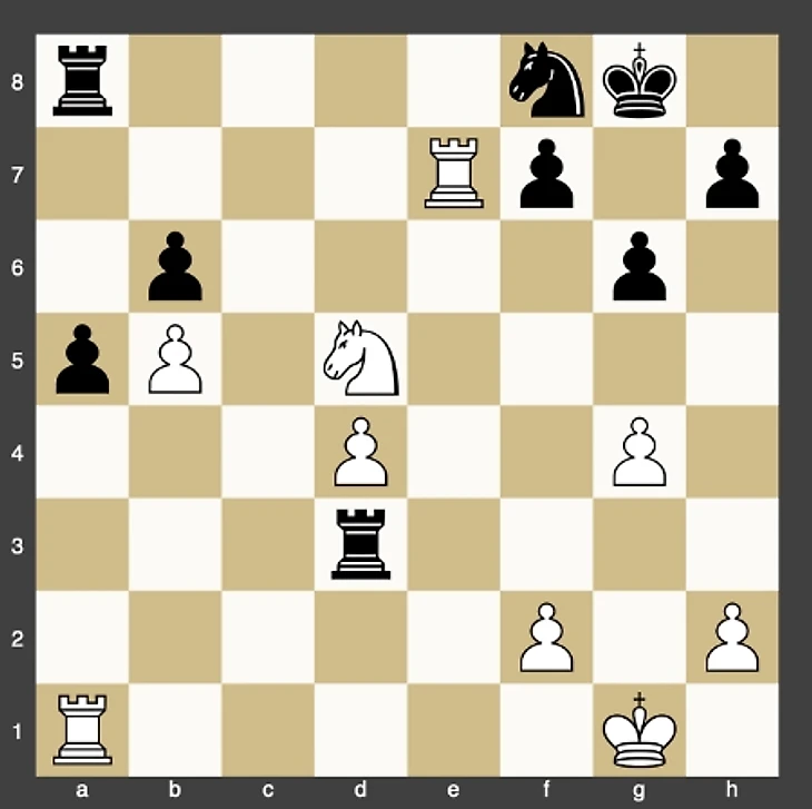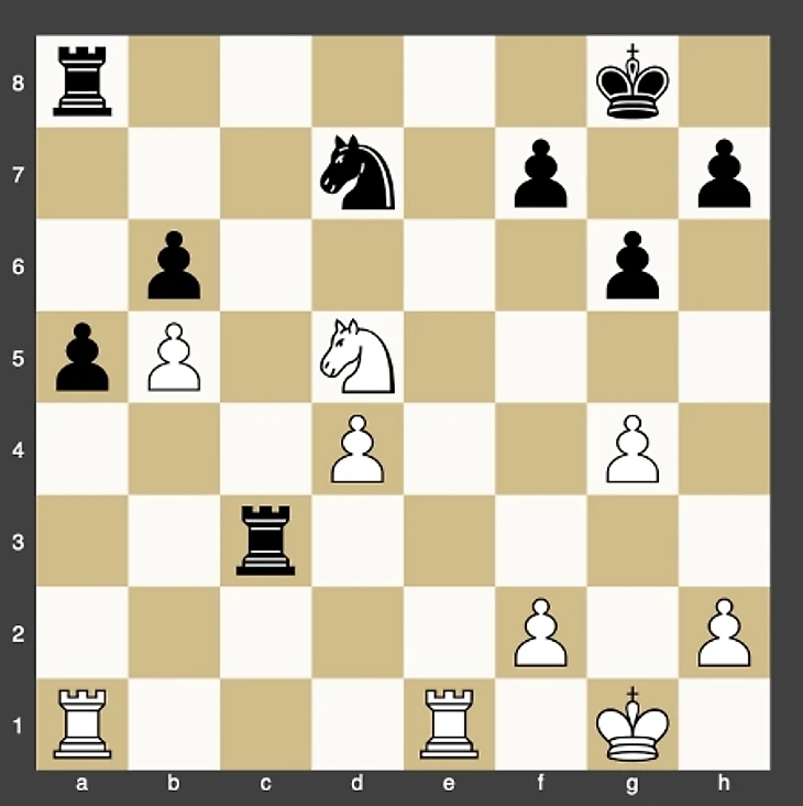 После коротких раздумий Ян сыграл – 27...a4. Время: 1:14 – 1:14. Оценка Stockfish – +0.05. Штиль.