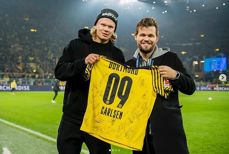 17:10. Переживает за Магнуса и Эрлинг Холланд, к которому в момент травмы норвежца заезжал в Дортмунд чемпион мира. Они вместе посмотрели на матч «Боруссии», после чего он поехал дальше готовится к матчу. Интересно, не склонял ли Карлсен, известный фанат «Реала», Холланда к переходу в «Королевский клуб»? Если так, то ему будут положено комиссионные от сеньора Переса.