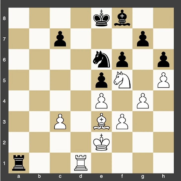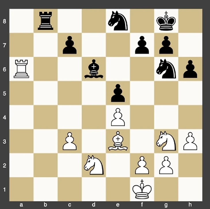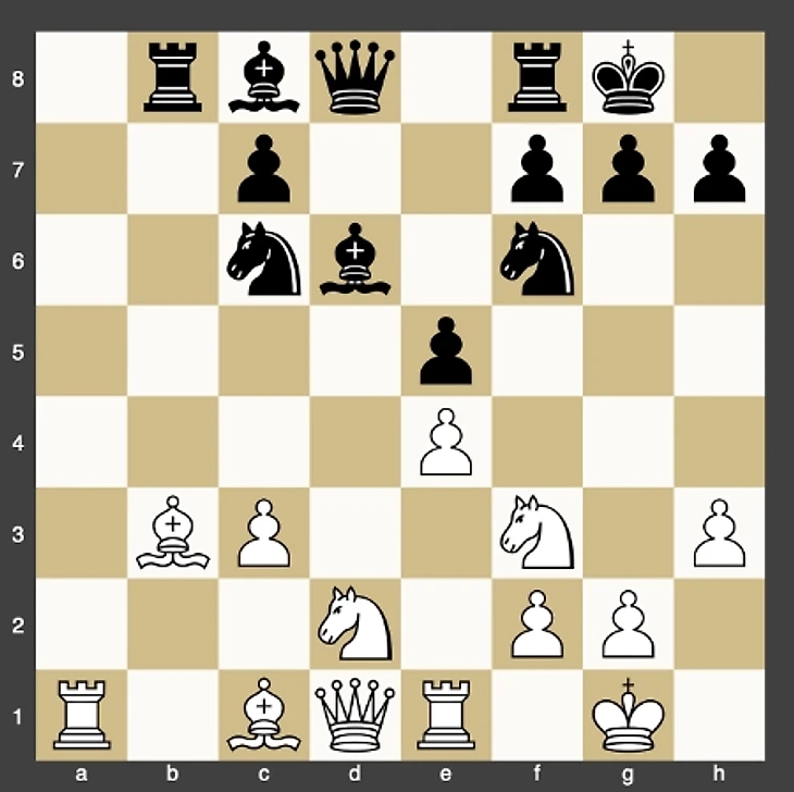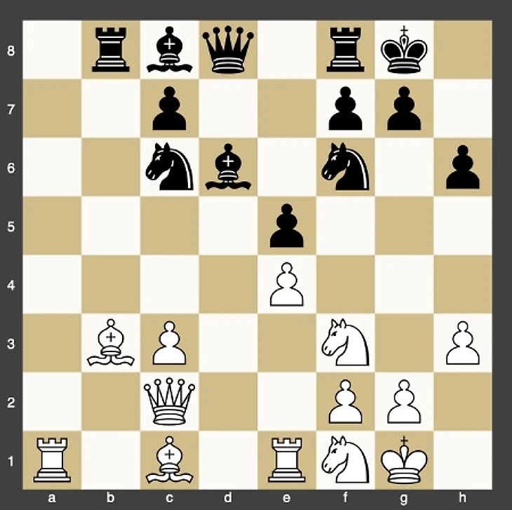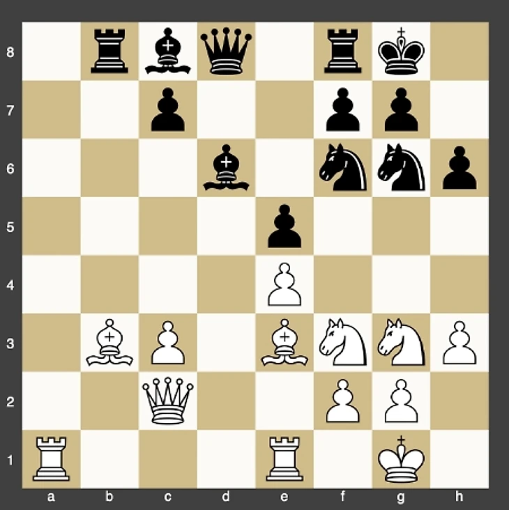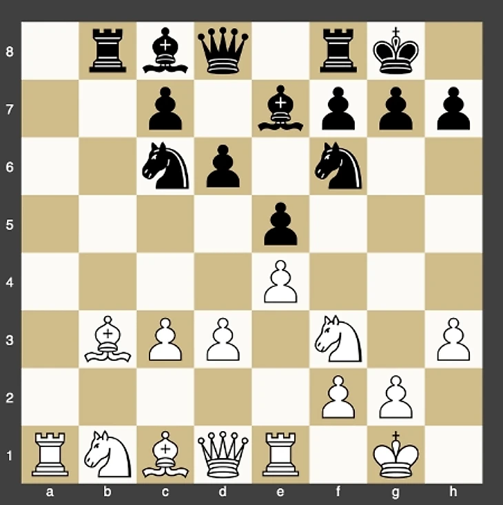 В чем преимущество белых, если оно есть? У них чуть больше пространства, полей, на которые можно поставить фигуры. Черные стоят пассивно, но у них нет ни одной слабости. Оценка Stockfish – +0.55.