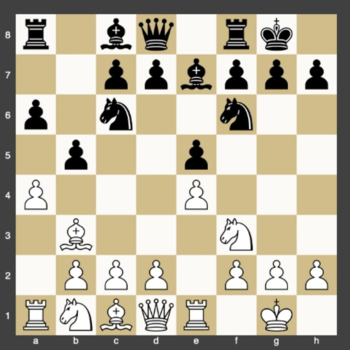15:30. Всех беспокоил вопрос, какой дебютный вариант изберет Непомнящий, и будет ли он менять руку? Ответ был получен сразу – Ян продолжил линию 1.e4. Маг – ответил симметрично – 1...e5. Тут же быстро последовало: 2.Nf3 Nc6 3.Bb5 a6 4.Ba4 Nf6 5.O-O b5 6.Bb3 Be7 7.Re1 O-O 8.a4.
