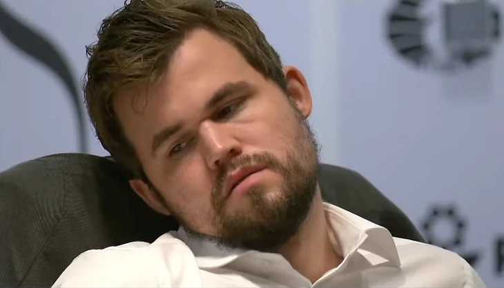 16:33. Как известно, но земле есть несколько вещей, на которые можно смотреть бесконечно... На огонь, на воду, на... думающего Карлсена. Он и вправду почти все время за игровым столиком!