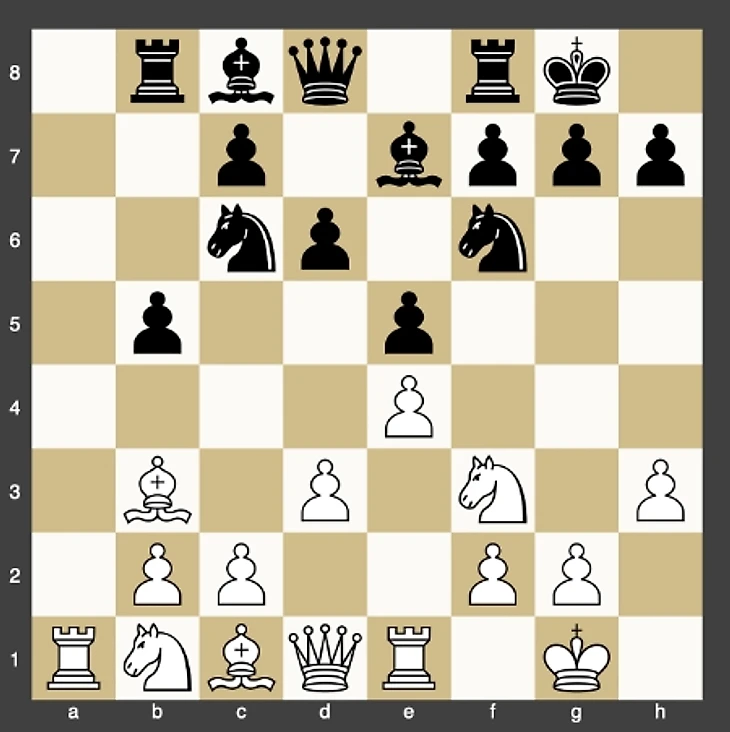 В чем смысл хода конем?! Обычно белые борются за контроль над центром путем c3-d4, заставляя соперника определиться: вскрывать, закрывать его или держать напряжение. Ход 12.Nc3 объединяет в себе обе идеи – во-первых, контроль над пунктом d5 (d6-d5 теперь невозможно), а конь в вариантах сам может прыгнуть на d5 и после размена на d5, белые будут приставать к конь с6. Во-вторых, конь с с3 запросто может перебраться на свое «законное» место на g3 через поле e2.