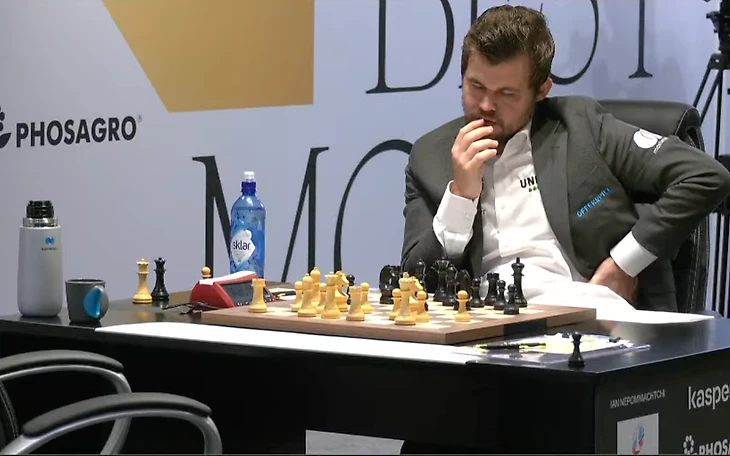 17:40. Если предположить, что штаб Непомнящего готовил его сегодня на большую борьбу, то ребята явно чего-то недосмотрели. В 5-й партии у них удалось напрячь Магнуса. Сегодня – нисколько...
