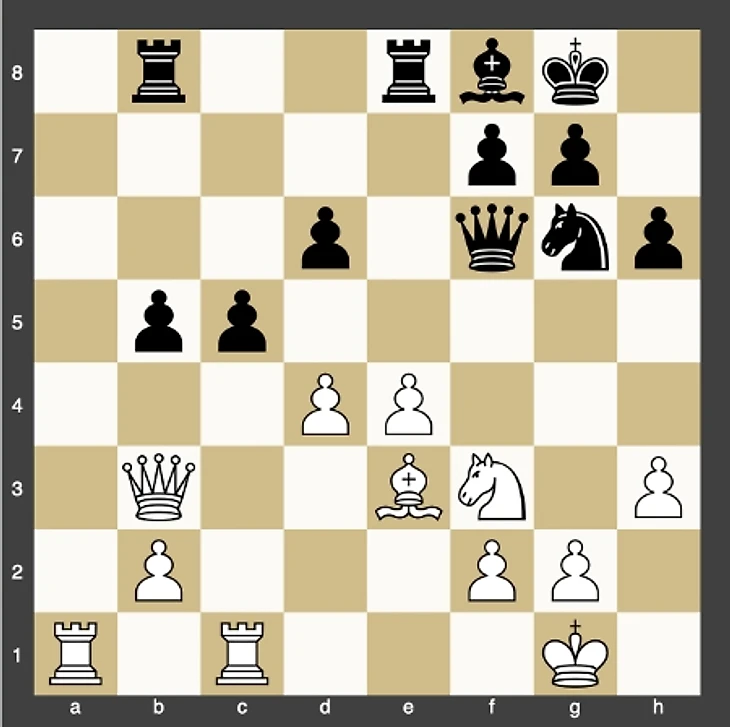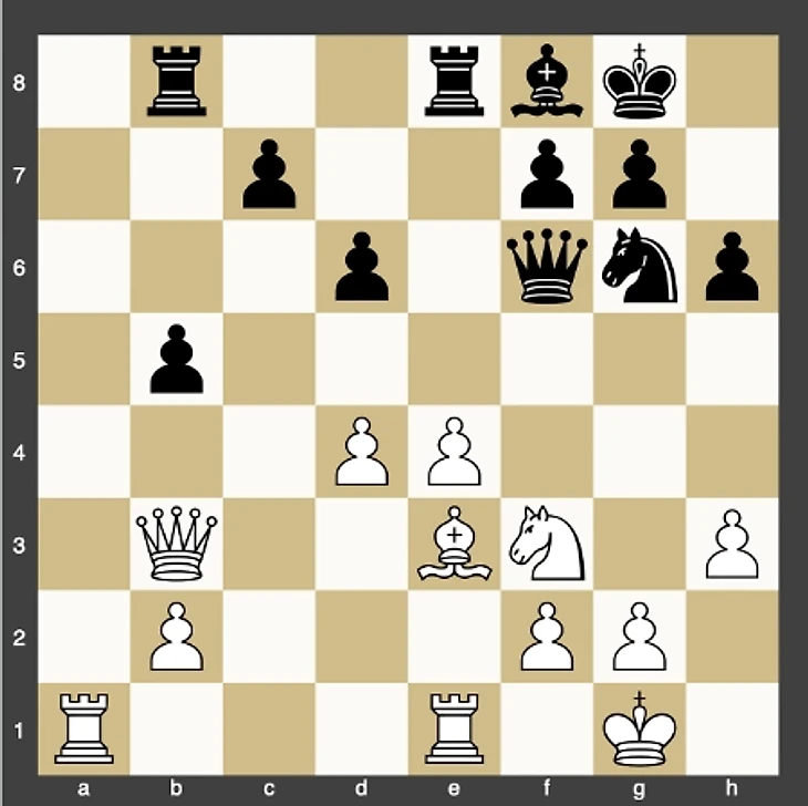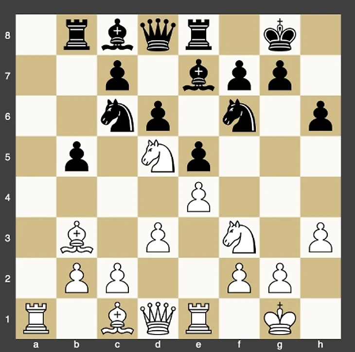 Более чем 20-минутные размышления чемпиона мира склонили его к ходу 15...Ne7. Что скажет Ян?