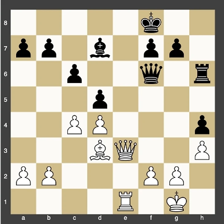 Позиция черных совершенно безнадежна. С разменами в ней лишь добавилось слабостей...
