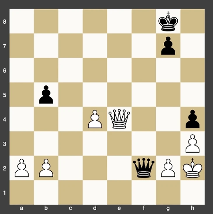 У черных нет двух пешек, помешать провести новых ферзей они не могут. Максимум – сделать много ходов с очевидным исходом. К слову, позиция, которую выиграл Карлсен в 6-й партии на самом деле была ничейной. Но для того, чтобы сделать ничью недостаточно было даже быть компьютером!