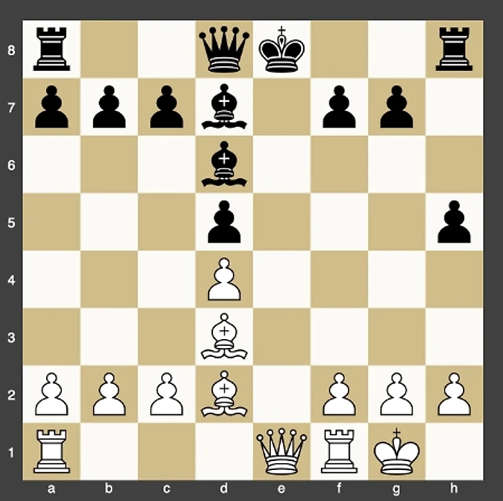 Кажется, что после четких действий Карлсена – 11.Qe1! резкий выпад 10...h5 не оправдался.