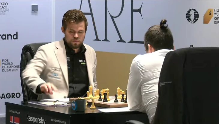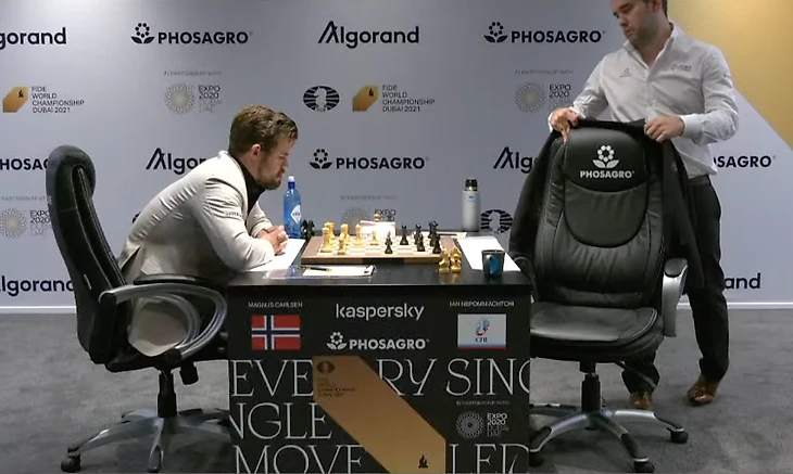 Сделав ход 9...h5, Непомнящий некоторое время покружил по сцене, посмотрел на Карлсена, и снял «для верности» пиджак. Главный вопрос – наступило ли в матче время для безумства смелых?