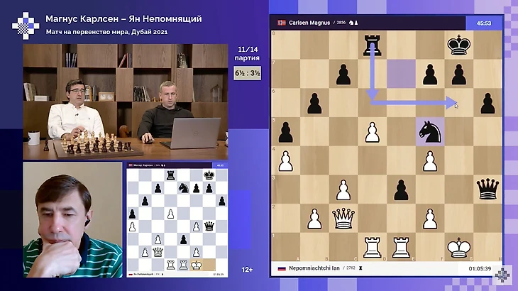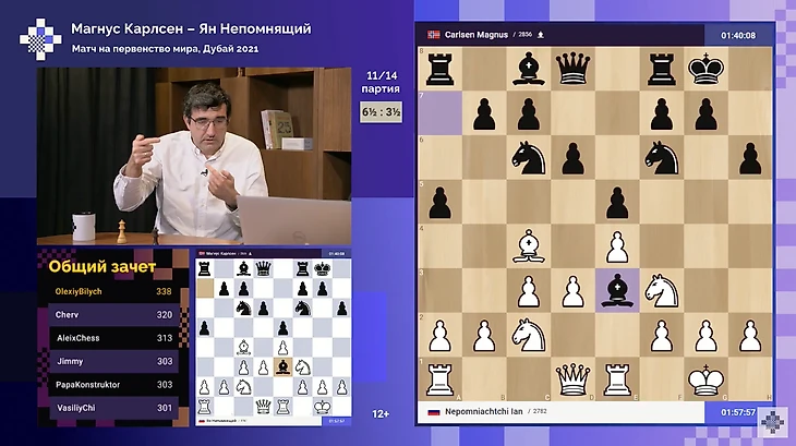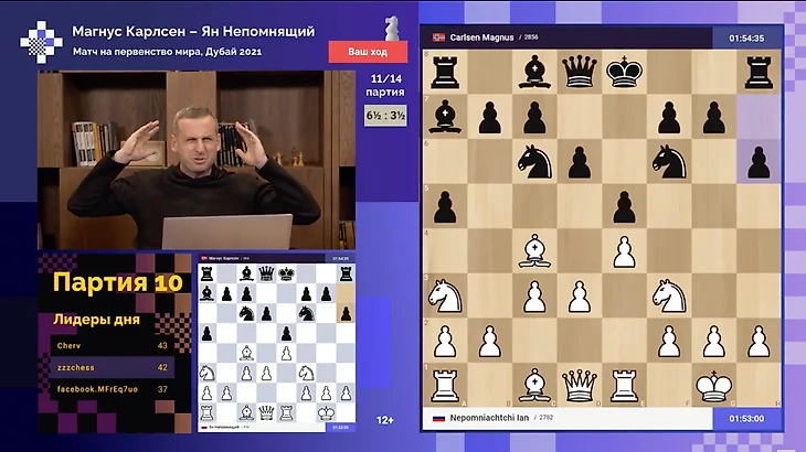 Мы следили за последней партий вместе с Levitov Chess (на канале можно угадывать ходы соперников во время партии), анализировали ходы и ситуацию со скринами. Регламент матча за шахматную корону вы найдете в самом низу онлайна.