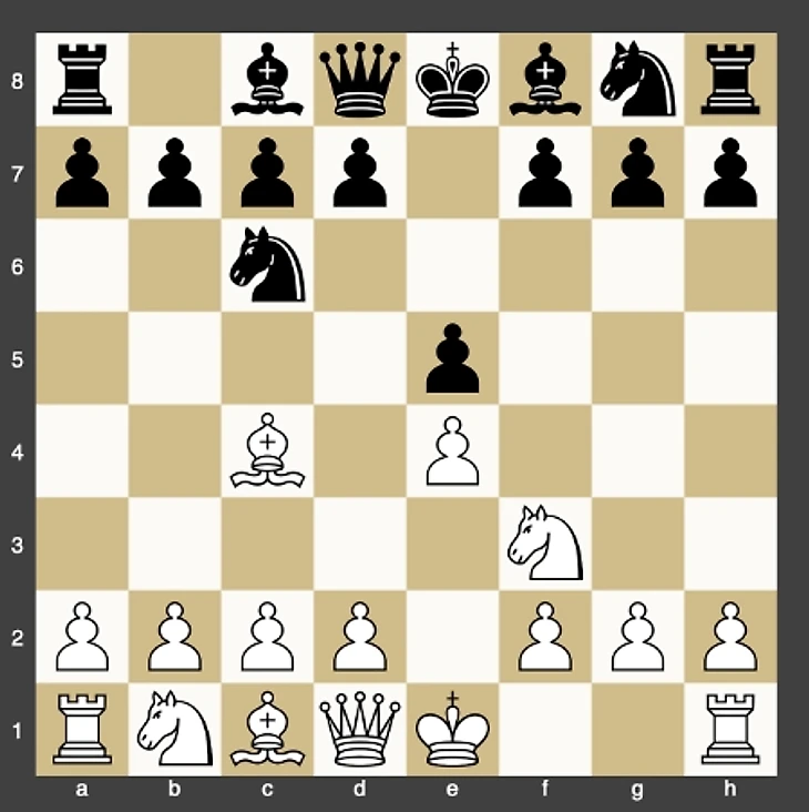 15:35. Непомнящий получил очередное 1...e5, но решил сыграть менее форсировано: 2.Nf3 Nc6 3.Bc4. Те же «испанские» рельсы, но немного по-другому. Быть может, здесь у него есть камень за пазухой?
