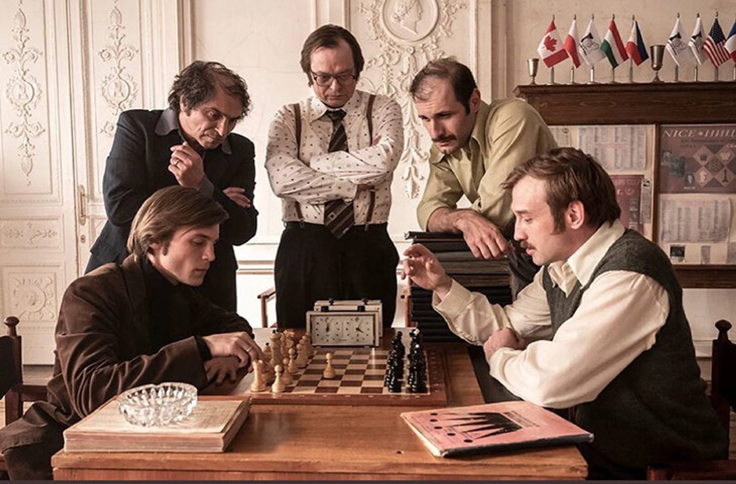 Секунданты и помощники – фон, который ничего не решает и не имеет отличительных признаков, хотя в жизни мужчины были намного фактурнее. Персонаж Виктора Добронравова (КГБшник в команде Карпова) возникает вообще из ниоткуда и тоже смешивается с толпой.