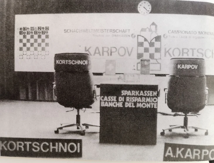 В те времена шахматисты могли доставить к матчу "свой" стул для удобства и комфорта, как это было в данном матче Корчной-Карпов. Виктор Корчной привез стул от своего швейцарского партнера и его делегация предлагала достать еще один для советской стороны. В итоге Карпову не понравилось, что Корчной мог сидеть выше его, и для Карпова так же доставили специальное кресло. После этого перед каждым туром специально вымеряли, чтобы кресла находились на одной высоте! Звучит как ребячество, но факт.